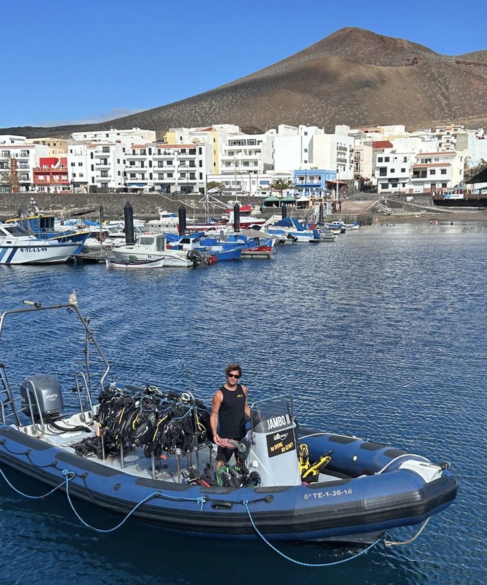 Esa conexión con El Hierro, sumada a la amistad con Kike, anterior propietario del centro, le llevó en 2022 a dar el paso y formarse como Dive Master en Buceo La Restinga. Al terminar el curso, se quedó trabajando en el centro, encadenando temporada tras temporada y convirtiéndose en una pieza clave del equipo.